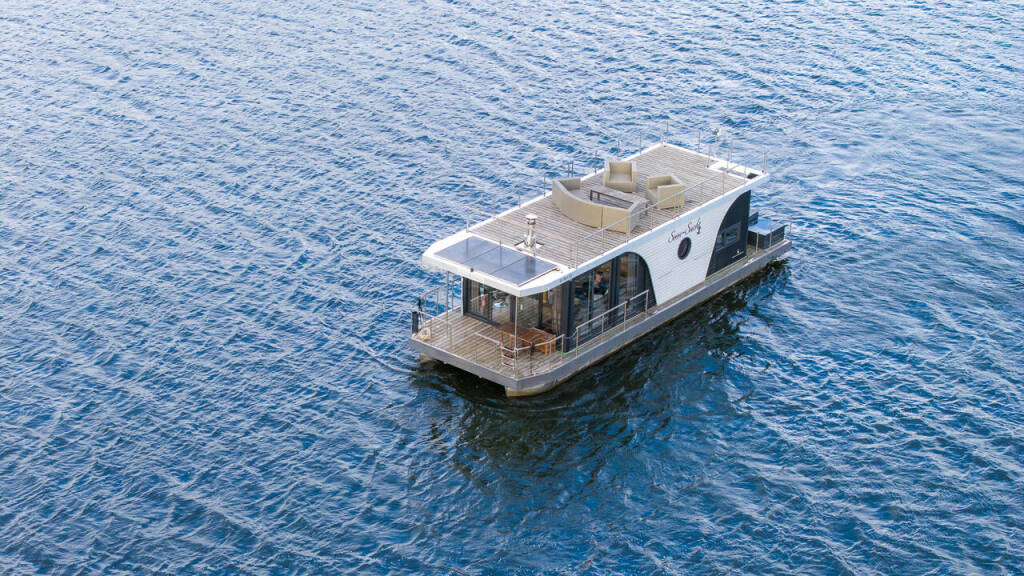 Auf der Seen-Sucht gleitet ihr mit Leichtigkeit übers Wasser – sanft, wendig und erstaunlich unkompliziert. Dank der modernen Technik und intuitiven Steuerung reicht es völlig, wenn ihr zu zweit unterwegs seid. So wird aus jeder Fahrt ein entspanntes Abenteuer, ohne Hektik und ohne Stress. Im Inneren empfängt euch ein lichtdurchflutetes, stilvolles Ambiente mit allem Komfort, den ihr euch für eure Auszeit wünscht. Die großzügigen Fenster holen die Natur direkt ins Wohnzimmer, während ihr euch auf dem Sofa zurücklehnt oder gemeinsam in der modernen Küche kocht. Dank der exzellenten Isolierung, der leistungsstarken Heizung sowie eines Kamins fühlt ihr euch auch im Frühjahr und Herbst rundum wohl – perfekt für kuschelige Abende an Bord, wenn draußen die Natur zur Ruhe kommt. Das Highlight ist das weitläufige Sonnendeck: Hier genießt ihr Frühstück mit Seeblick, lasst den Tag in Loungemöbeln ausklingen oder schaut abends den Sternen beim Funkeln zu. Und weil die Spree-Perle mit Solarkraft unterstützt wird, seid ihr besonders autark unterwegs – frei, unabhängig und immer mitten im Urlaub.